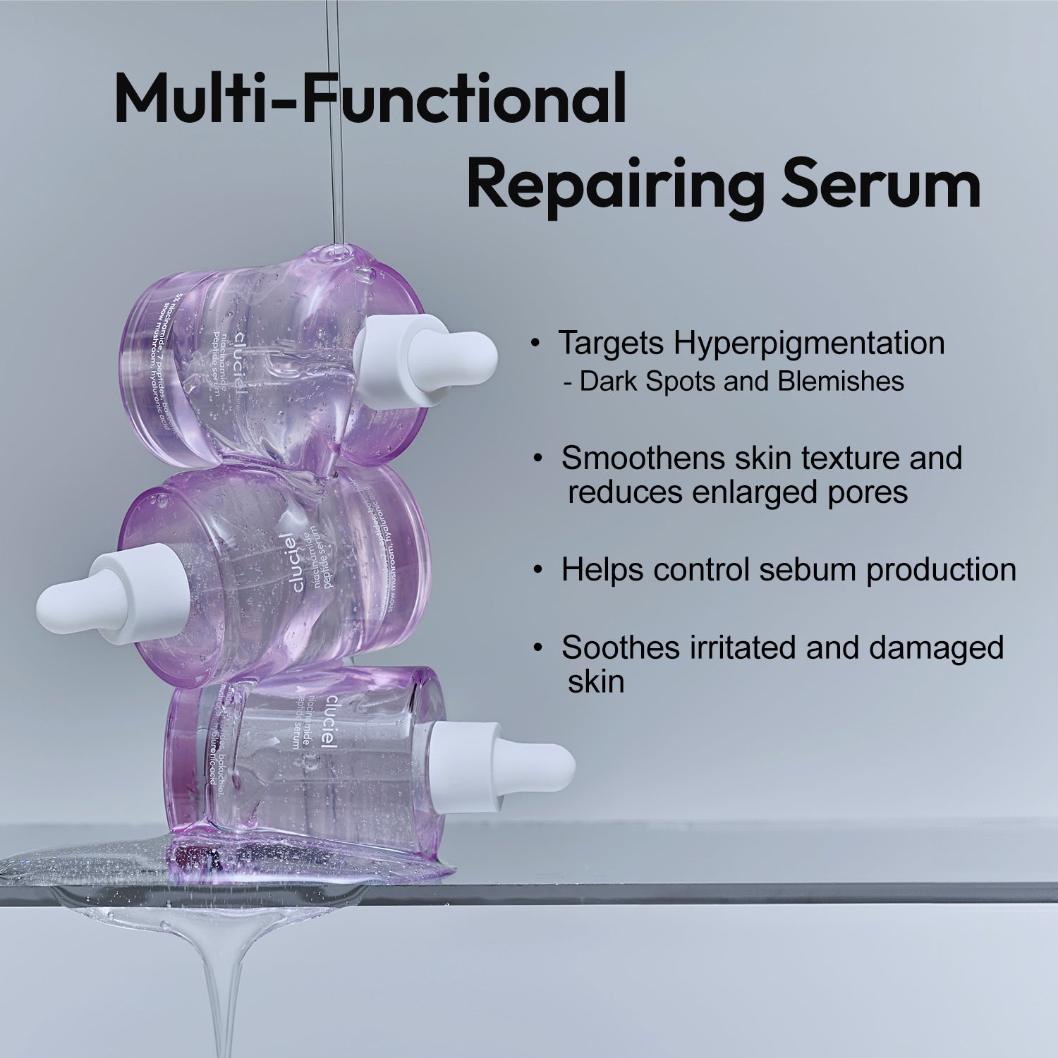 Multi-functional repairing serum that targets various skin concerns and improves overall skin condition for healthy radiant glass skin.
